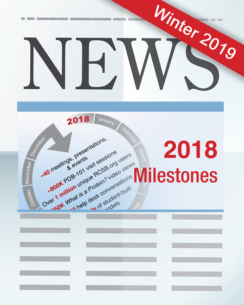 This issue reviews 2018 milestones and publications, improved support for XFEL/SFX structures, new PDB-101 resources for exploring Molecular Evolution and Antimicrobial Resistance, and more. The Education Corner describes how the BioMolViz Group is Creating Accessible Tools for Molecular Visualization Instruction.