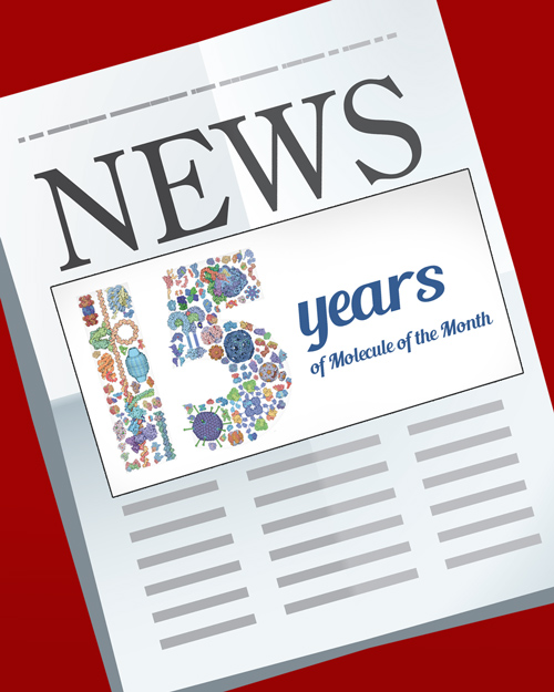 Read about 2014 statistics and highlights, large structures in the PDB, 15 years of the Molecule of